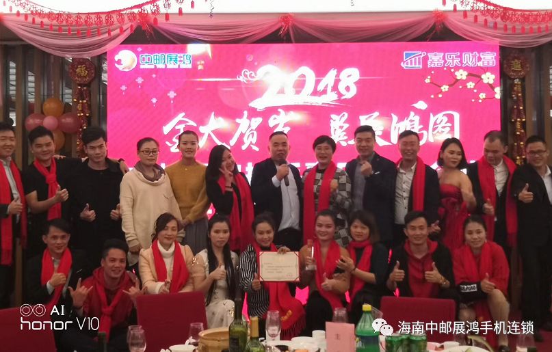 18:30 由中邮展鸿三亚团队一支《恭喜发财》舞蹈开场,主持人宣布”金犬贺岁 翼展鸿图”中邮展鸿携手嘉乐财富企业年暨客户答谢会正式开始。